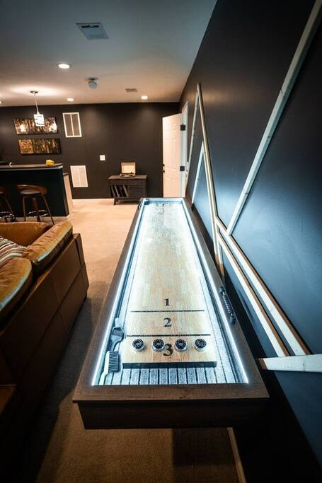 The home layout is as follows: Upper level: - Oversized deck with brand new 7-person hot tub and adjoining bar, 4-person cedar barrel sauna, dining table for 10, lounge area with plenty of seating around the propane fire table, and gas grill (propane provided). Seasonal views of the Shenandoah Ridgeline - Living room with ample seating and working gas log fireplace - Huge renovated kitchen with gas range, double wall oven, wine cooler, and everything you need to prepare large meals, with bar seating for 4 - Grand dining room with seating for 14 and working gas fireplace - BR1: Master bedroom with king bed, huge walk-in closet, and ensuite bathroom with soaking tub, tile shower, and two vanities - BR2: King bedroom - BR3: King bedroom - Hallway full bath with shower/tub combo - Laundry room with full size washer and dryer Lower level: - Massive additional living room with 65” TV, wet bar with seating for 5, shuffleboard, foosball, and couch/seating area - Additional game room with two digital pinball machines, arcade with 1000’s of games, and infinity game table for endless board game play - BR4: King bedroom - BR5: King bedroom - BR6: Two queen bedroom - Full bath with shower/tub combo, next to BR6 and game room - BR7: Bunk room with 2 sets of build-in bunks. One is twin-over-twin, the other is full-over-full. - Hallway full bath with shower Things to do nearby: The house is about a 7 minute drive to the slopes, pool, and dining at Massanutten, 4 minutes to the spa, and just 2 minutes to the indoor/outdoor Waterpark. The Swift Run Gap entrance to Shenandoah National Park is 15 minutes away with some of the best hiking on the east coast. JMU and everything else in Harrisonburg is 18 minutes away, and there are several breweries, wineries, and restaurants within 15-20 minutes of the house. - Shenandoah Wildflower is pet friendly! We allow up to 4 pets with a $100 pet fee (total, not per pet or per night). We provide some helpful supplies for pet-owners. - We provide our guests $1500 of coverage for accidental damage to the property or its contents. The cost of this is already embedded in the cleaning fee. - Massanutten offers hiking, skiing, snowboarding, tubing, swimming, dining, spa, ropes course / zip line, golfing, go carts, mini golf, and much more. - There are two driveways that can fit about 6 large vehicles or 8-9 smaller vehicles. There is an overflow parking lot available in Massanutten. - Wifi is fast with a strong signal throughout the house and decks. Five of the seven bedrooms, plus the downstairs living room and the downstairs game room, feature a smart TV where you can access all the main streaming services. - We provide a fully stocked coffee bar with multiple coffee drip and Keurig options - Guests can enjoy community pool access in the summer season for a $6 per person fee. - Linens and towels provided - Pack n play, high chair, kid dishes/utensils, and baby monitor provided - We do require a separate rental agreement, which we will send a link to e-sign after you book. There are no additional fees beyond those listed here. Lastly, this property is located within an HOA that requires the community rules to be posted here, so here are those rules: WELCOME TO MASSANUTTEN! This home is in a private residential neighborhood and is part of the Massanutten Property Owners Association (MPOA), governed by its rules and regulations. There are rental homes in all MPOA neighborhoods, but people also live here. Your nearby neighbors may be full-time residents, including families with children, retirees, second-home owners and other guests enjoying their retreat. NOISE • Quiet hours: 10:00 PM - 7:00 AM. • Keep noise indoors during these hours. • No excessive noise at any time, as judged by MPOA or its assigned agents. PARKING • Keep all tires off the road. • Don't block fire hydrants or park in front of another property without written approval from your host. • Park only in designated areas or overflow lot (4007 Peak Dr., Massanutten, VA 22840) • No buses, campers, or RVs to be parked at homes or on roads. Overflow lot is available with written approval from your host. OUTDOOR FIRES • High wildfire risk area! • No open fires. • No unattended fires. • No firepit use during quiet hours (10:00 PM - 7:00 AM). • Firepits and grills may be restricted during local emergency conditions, check MassanuttenVillage(dot)com or electronic sign at entrance for updates. ALCOHOL No open containers on roads or in common areas. PETS • Leash always required when outside. • Clean up after your pets. TRASH • Do not place garbage/trash outside, including screened-in porches, decks or carports. Trash attracts wildlife, which could endanger you and damage the property. • Dumpsters are located at 4003 Peak Dr., Massanutten, VA 22840